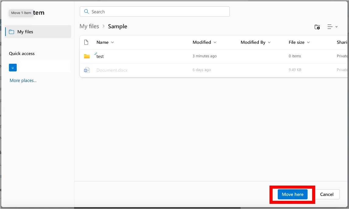 3. Please click “Move here” at the bottom of the screen. The file will be moved to the folder you chose.