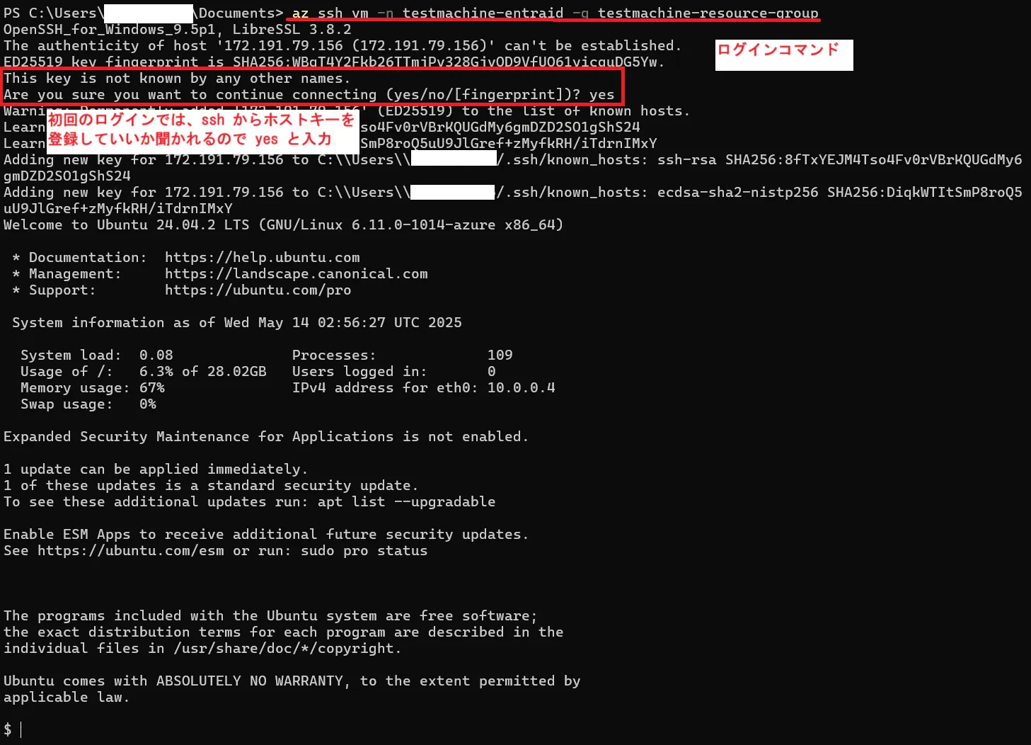 Azure 仮想マシンへのログインには,仮想マシンの作成時に予め必要な設定をすることによって UTokyo Account を使って ssh ログインすることもできます.