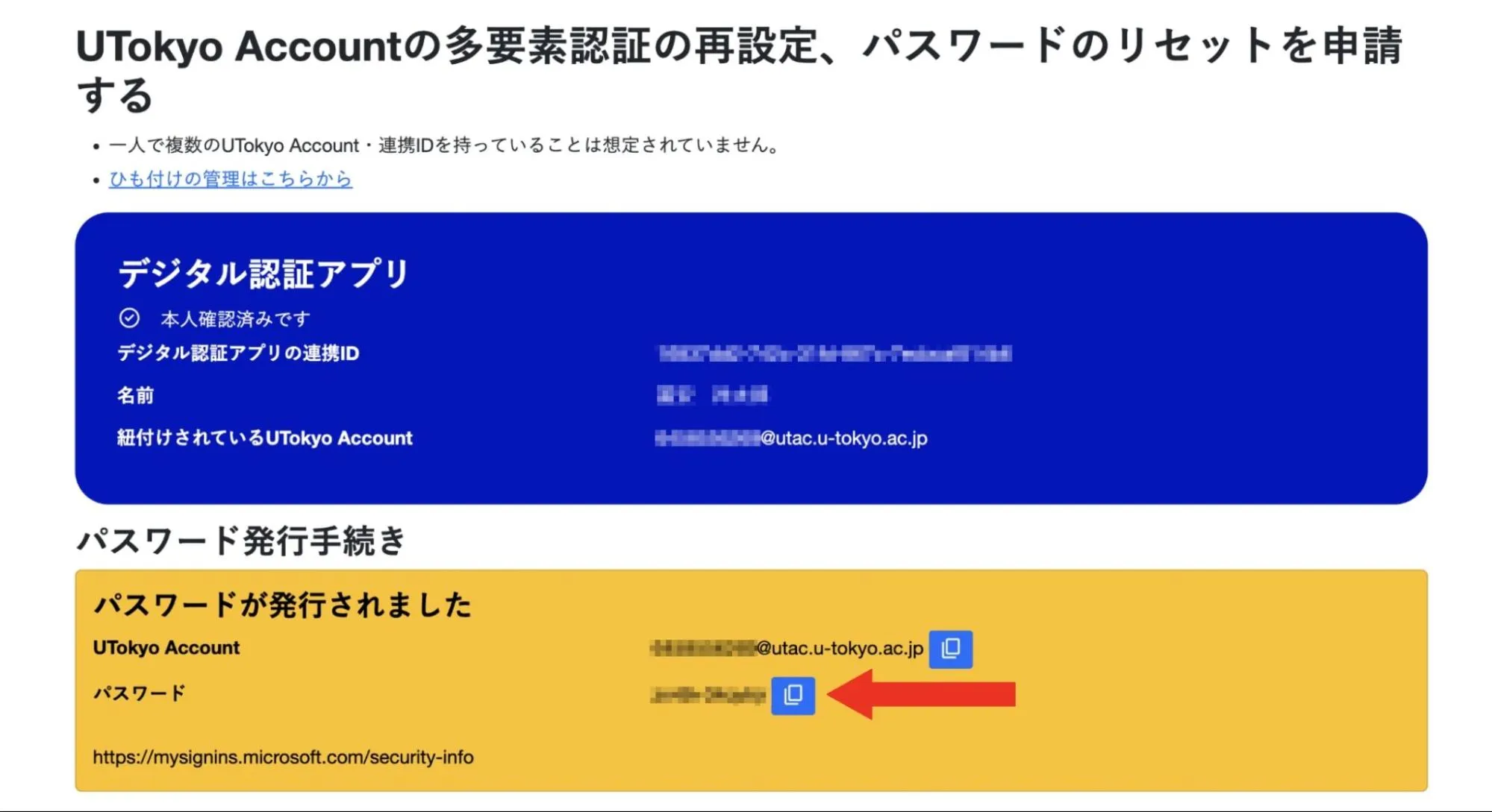 「UTokyo Accountの多要素認証の再設定、パスワードのリセットを申請する」を押してください.