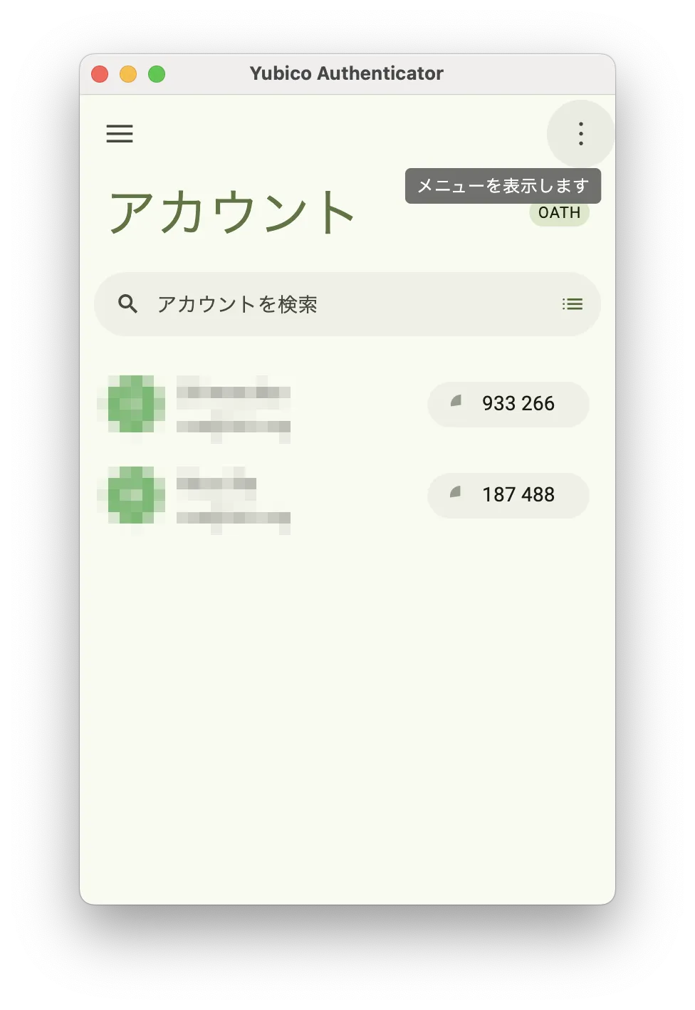 4. Yubico Authenticatorアプリにアカウントが追加されていればOKです.
