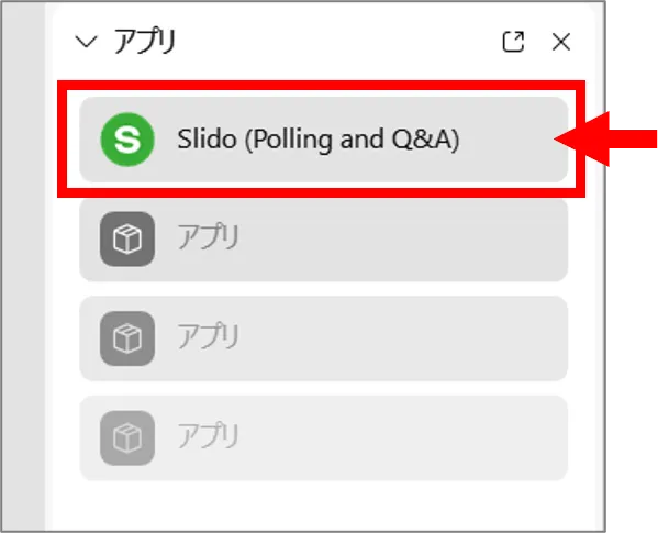 - アプリ画面が表示されますので,Slido(Polling and Q&A)を選択します.